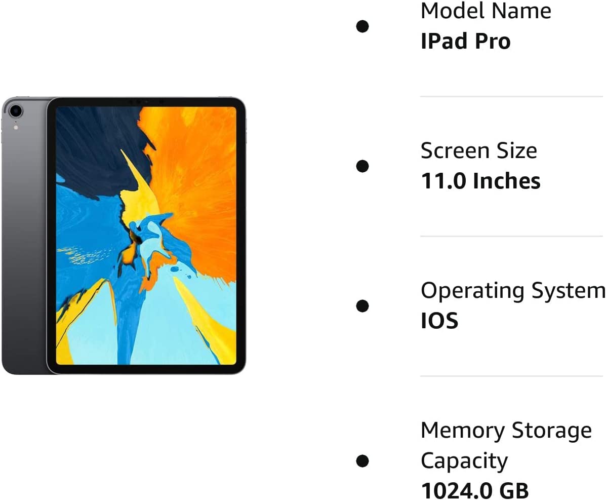 Apple iPad Pro 2018 (11-inch, Wi-Fi + Cellular , 1TB) - Space Gray - (Renewed)