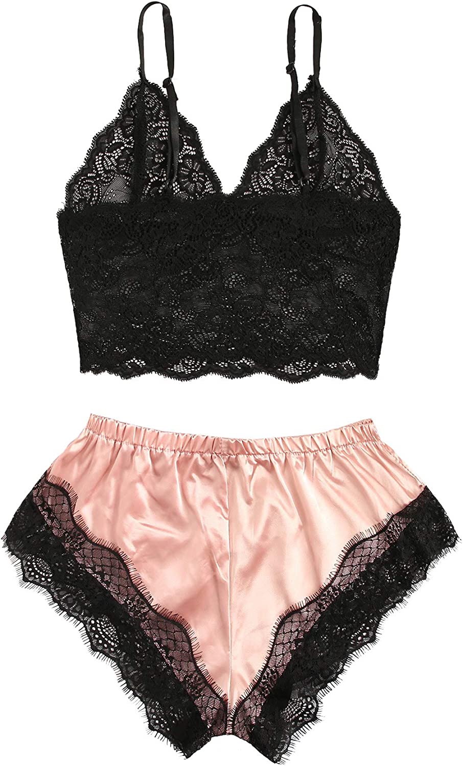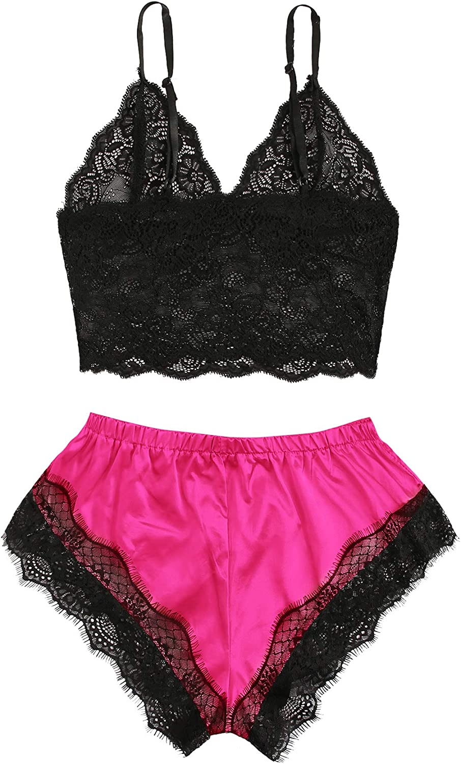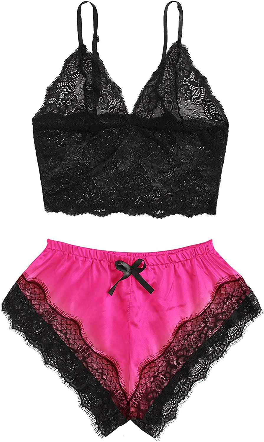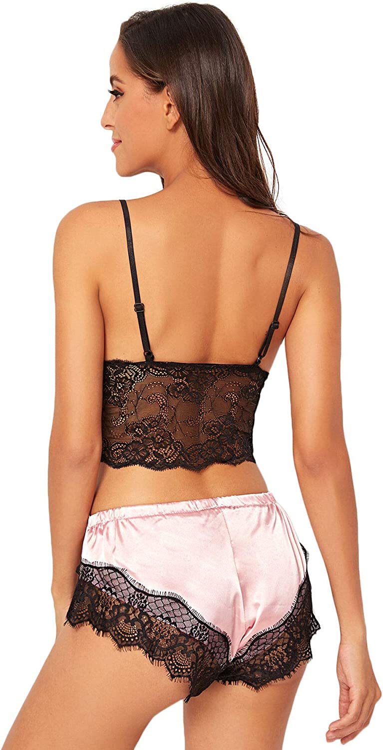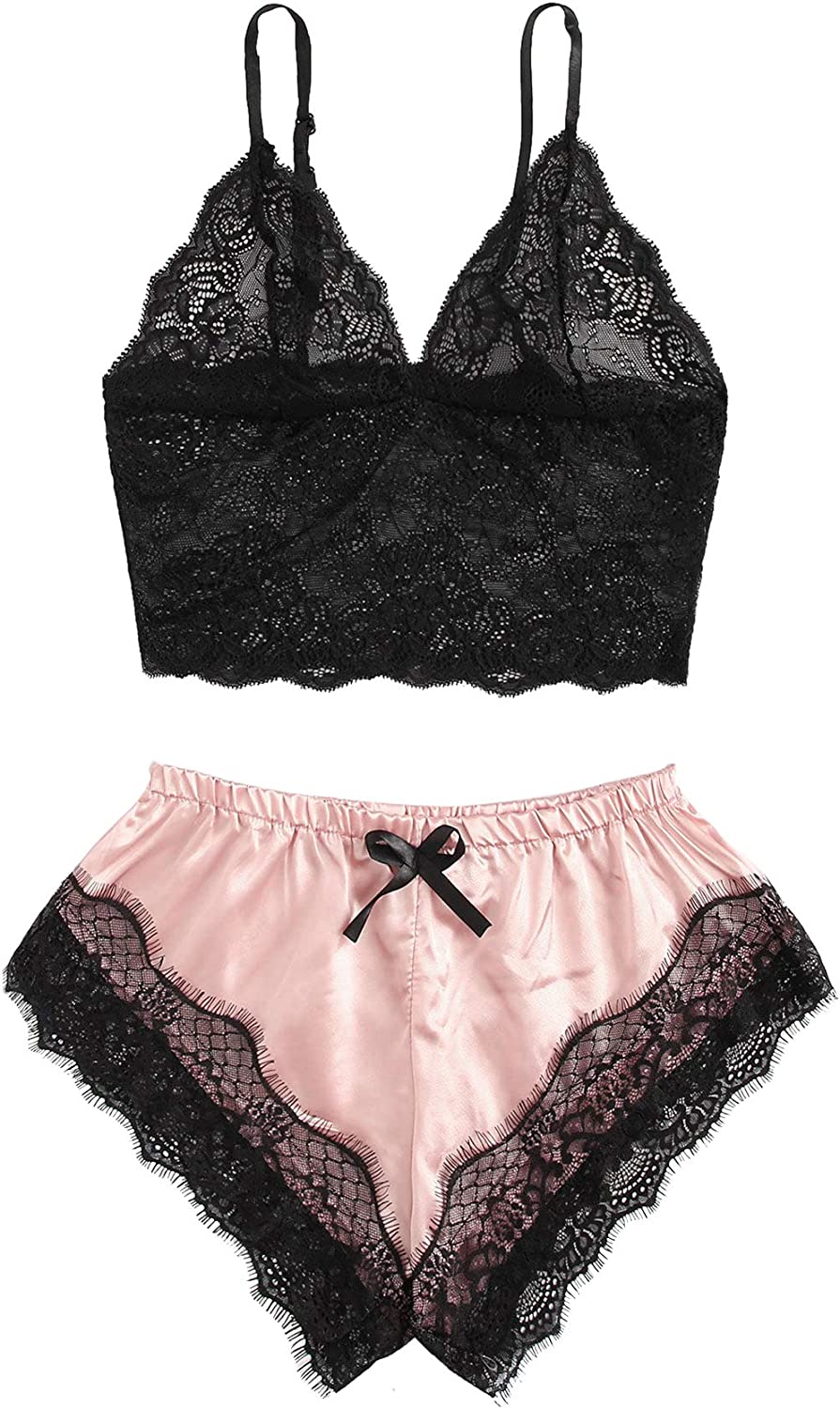 SweatyRocks Women's Lace Cami Top with Shorts with Panties 2 Piece Set Sexy Lingerie Pajama Set