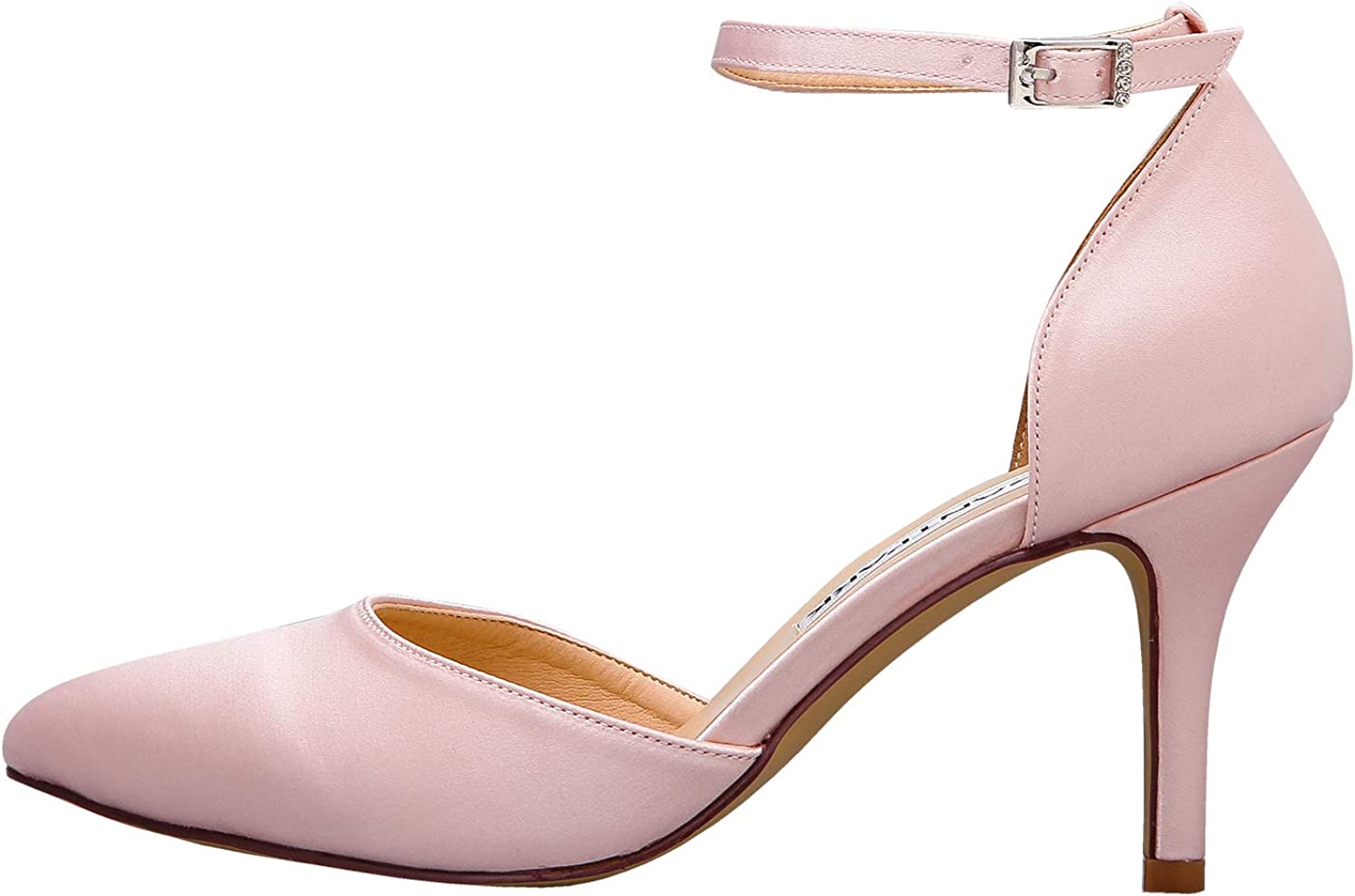 ELEGANTPARK Women Pointed Toe High Heel Pumps Satin Ankle Strap Wedding Bridal Evening Party Dress Shoes