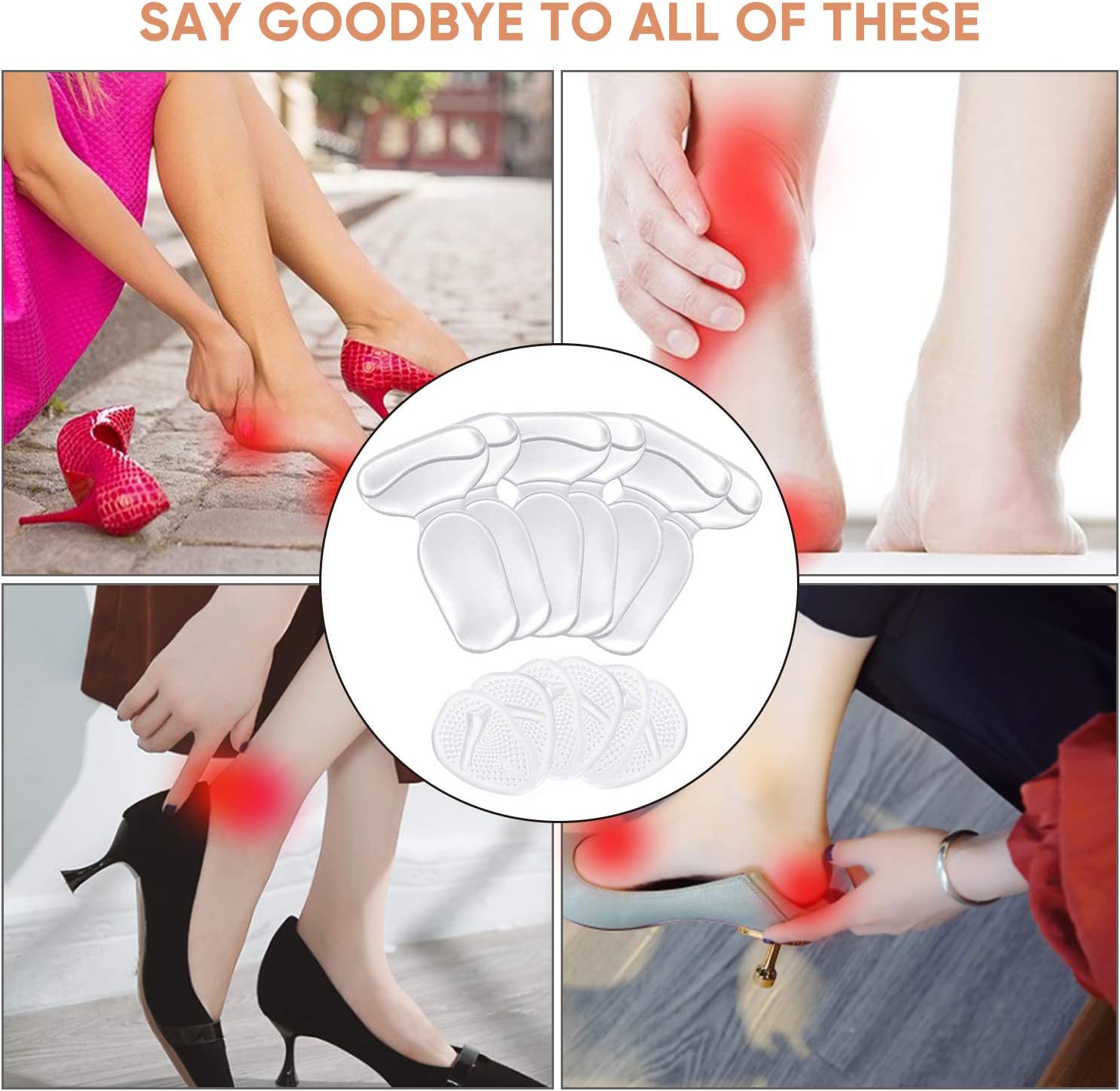 Heel Cushion Inserts and Metatarsal Pads for Women, 3 Pairs Heel Grips and 3 Pairs Ball of Foot Cushions, Silicone Shoe Pads Insoles for High Heels, Blister Prevention for Too Big Shoes …