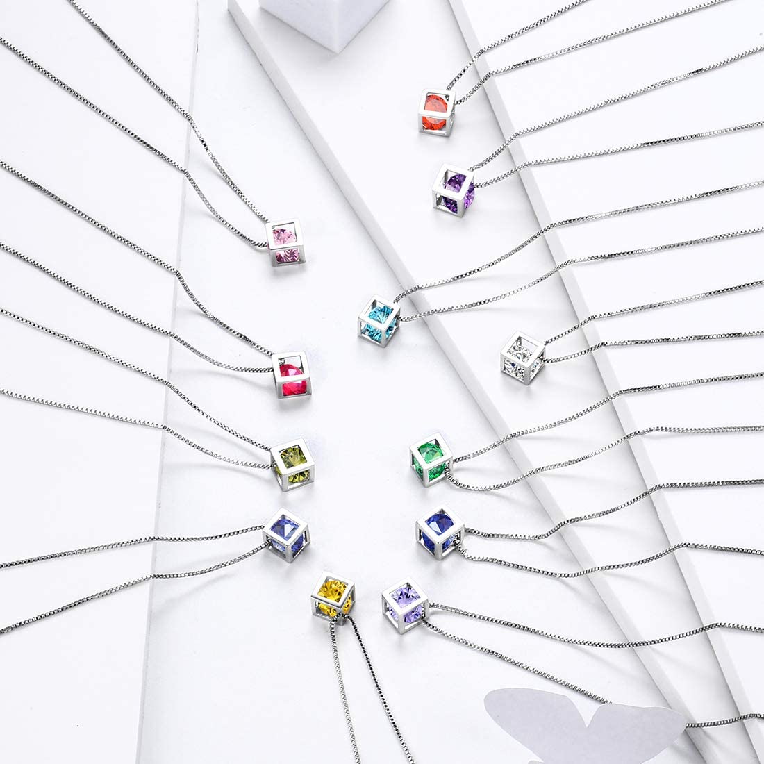 Birthstone Necklace/Earring 925 Sterling Silver Women Cross/3D Cube/Cresent Moon Birth Stone Jewelry Mens Birthday Gift Anniversary Present