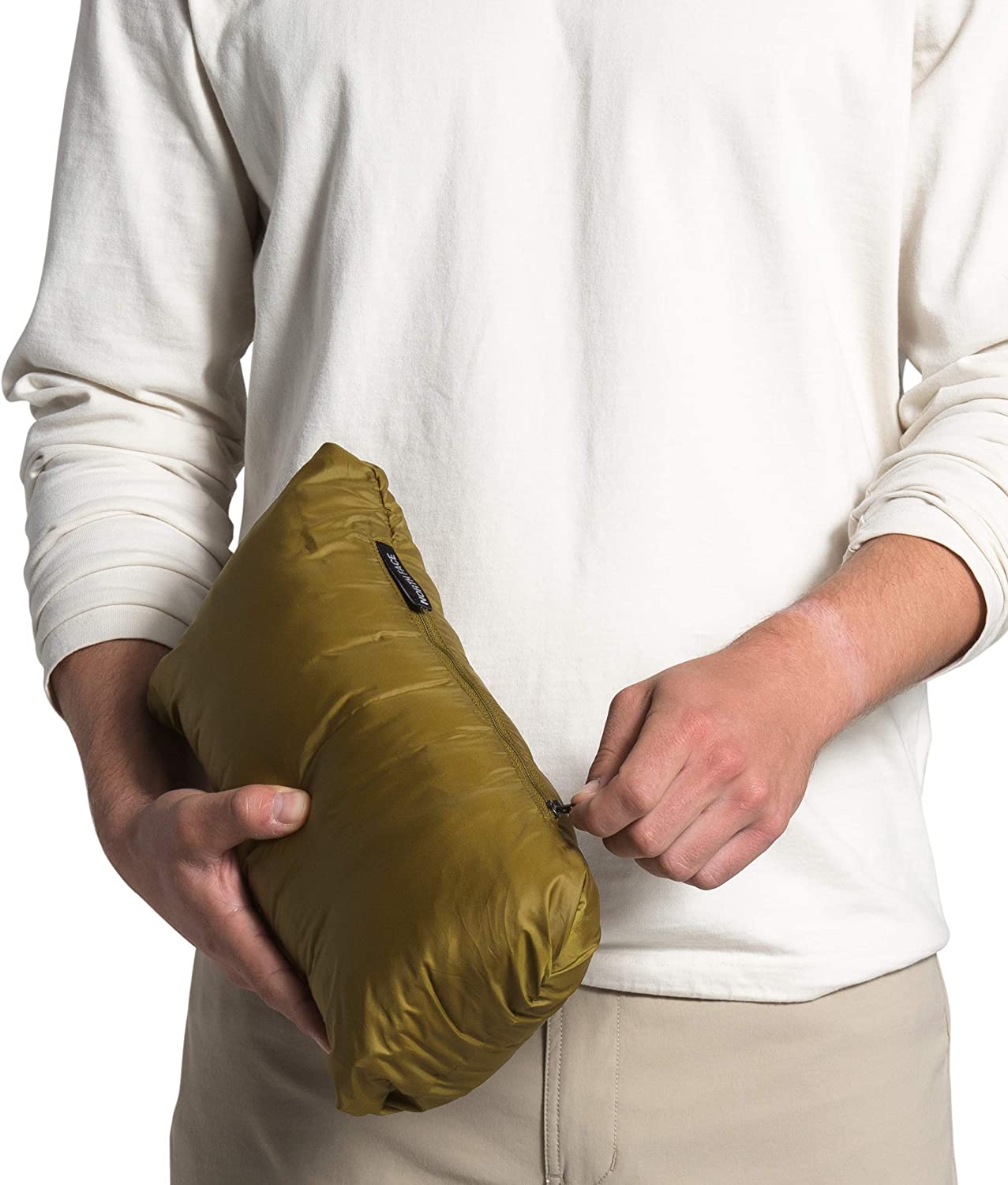 PACKABLE DESIGN. This jacket creates its own compact storage pouch by packing into the hand pocket. Perfect to stow away in your backpack or throw in your luggage for a compact warm-layer on the go.