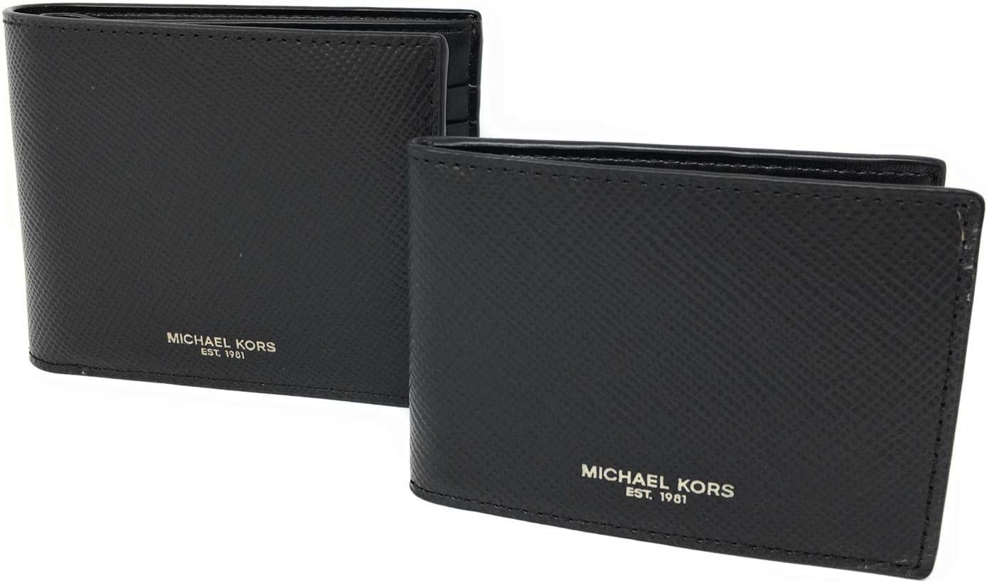 Michael Kors Men's Harrison Billfold with Passcase Leather Wallet No Box Included,slim (Black)