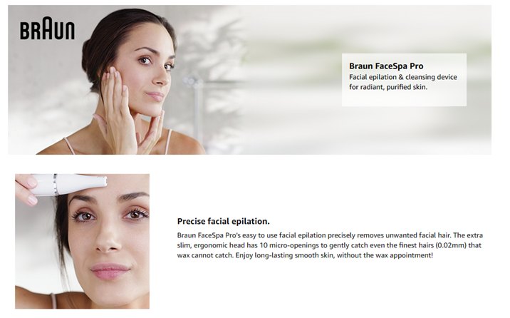 The Braun FaceSpa Pro is the World's 1st 2-in-1 facial epilation and cleansing device. Gently remove facial hair by the root with the epilator attachment for long-lasting smooth skin. Simply switch the attachments to deeply cleanse skin with a facial brush 6x more effective than a manual wash.Braun FaceSpa Pro is a rechargeable device for continued salon beauty at home. On hard to remove oil-based foundation.
