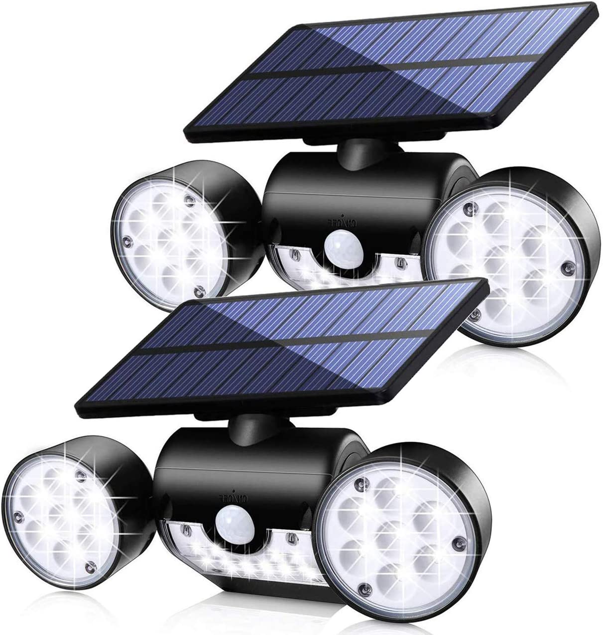 Fatpoom Solar Lights Outdoor 30 LED Solar Security Light with Motion Sensor Dual Head Spotlights IP65 Waterproof 360° Adjustable LED Solar Motion Lights for Front Door Garage Patio Deck (2 Pack)
