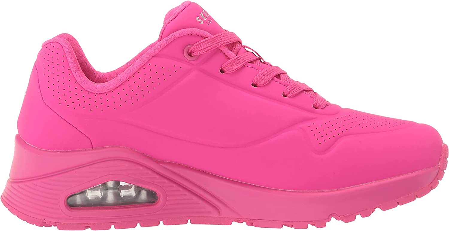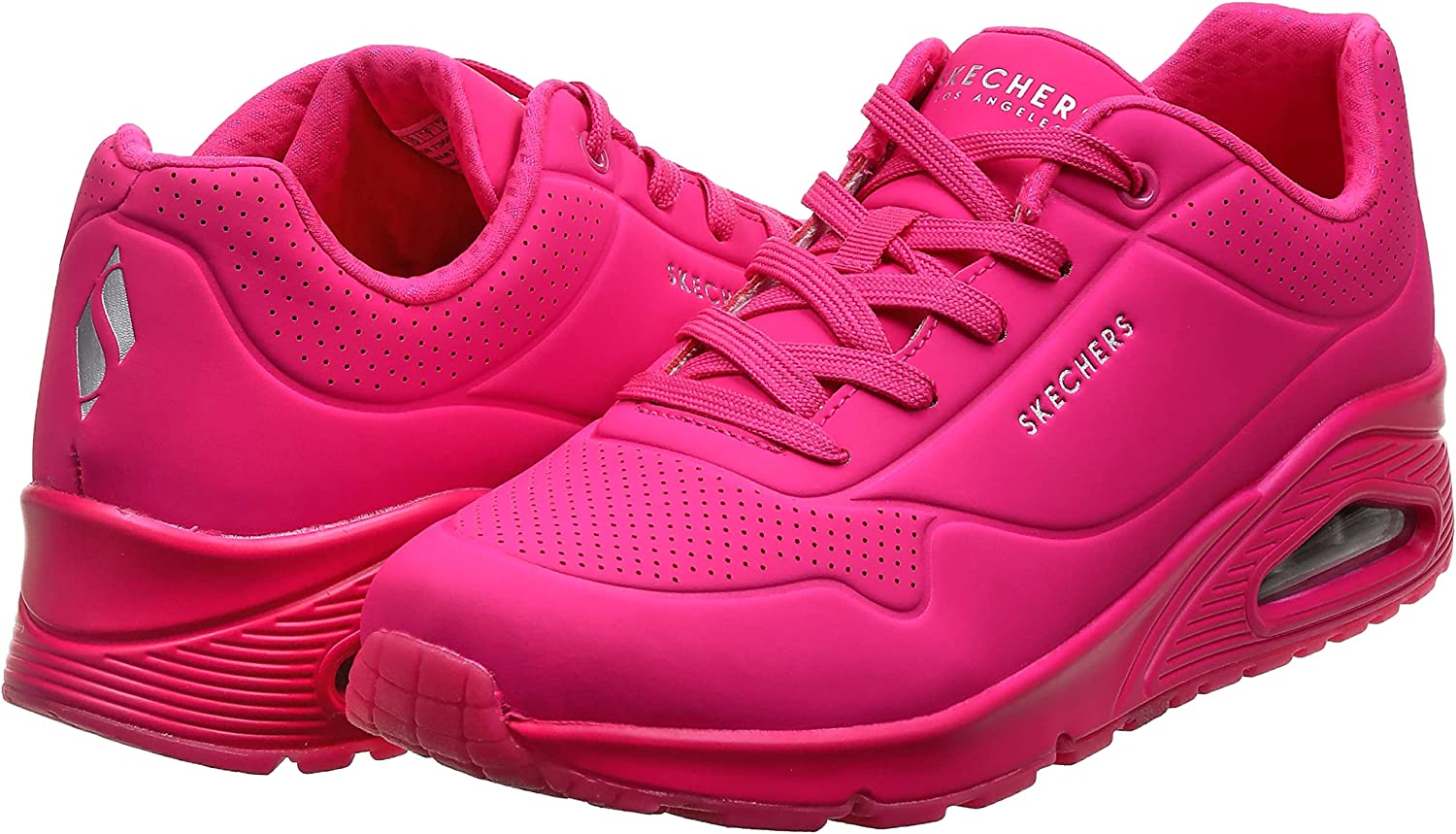 Vivid colors and classic sporty style combine in the SKECHER Street Uno - Neon Nights shoe. Smooth neon colored leather-textured 'durabuck' synthetic upper in a lace up classic fashion sneaker with stitching and perforation accents. Air Cooled Memory Foam insole, visible air cushioned midsole.