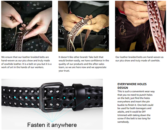 • ✯ HAND-WOVEN BELT --- Our leather braided belts are 100% hand-woven as our pics show and truly made of cowhide leather. It is a belt on you but it is a work of art in the hands of our workers. Belt 1.3” wide and buckle 1.85” wide.