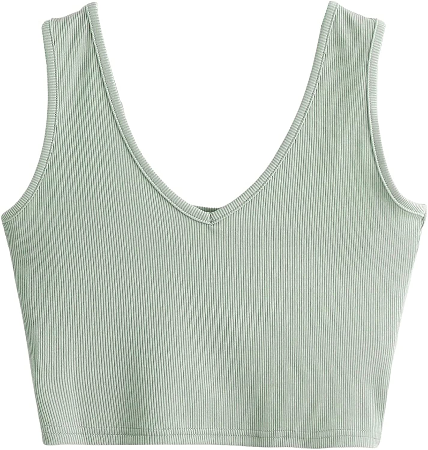 SweatyRocks Women's Sleeveless Casual Ribbed Knit Shirt Basic Crop Tank Top