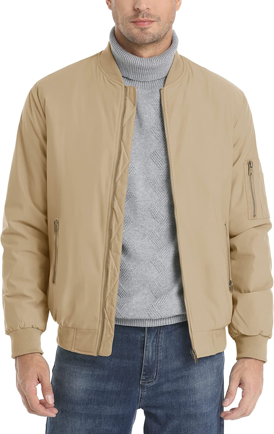 MAGCOMSEN Men's Bomber Jacket Fall Winter Warm Jackets Full Zip Padded Coats Windproof Thick Jackets Outwear Zipper Pockets