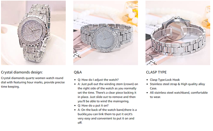 • ? Sliver Watch for Women Diamond Watch -- COMFORTABLE AND ELEGANT Strap: High quality, soft and durable materials to provide a comfortable wearing experience.And convenience for you to adjust the strap to the appropriate length you are wearing.