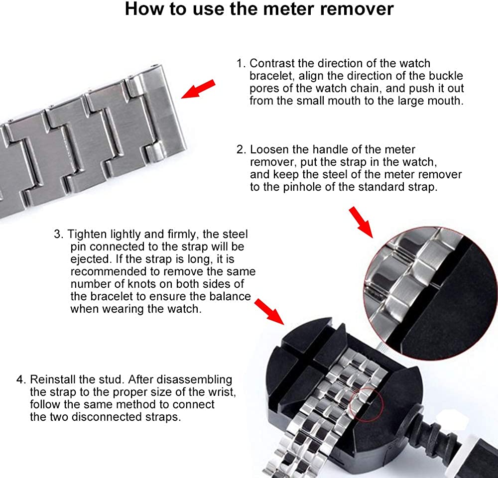 • ? PACKAGE & BUY WITH CONFIDENT: Comes with ADJUSTMENT TOOL, you can remove the link and shorten the band length if the band is long and not fit for your wrist. You can find the usage of the adjustment tool in the main picture on the left.Please be attention:package not include cleaning cloth!Always feel comfortable to contact us if there's any problem with the product!