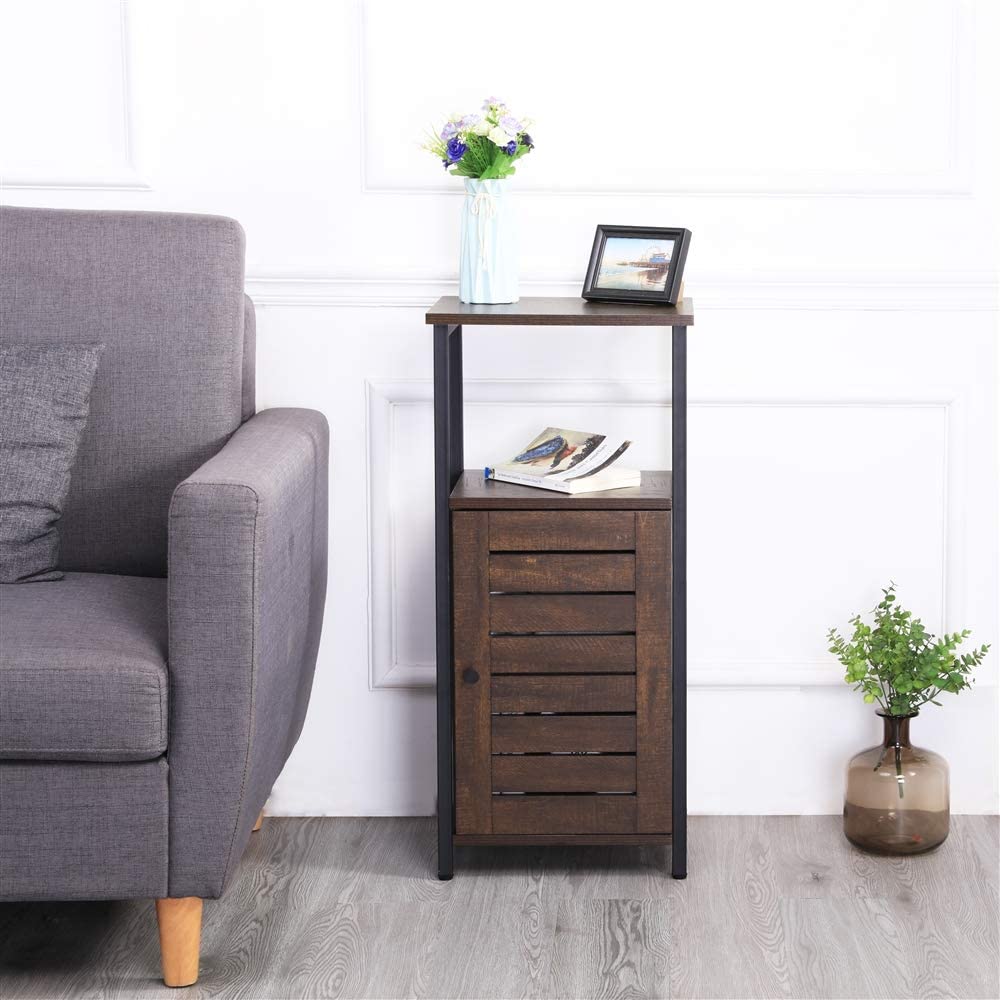 [VERSATILE]: This floor cabinet is designed with upper open shelves for display and bottom concealed spaces with single shutter door for storage; compact size makes it easy to fit for small spaces in the entryway, hallway or living room.