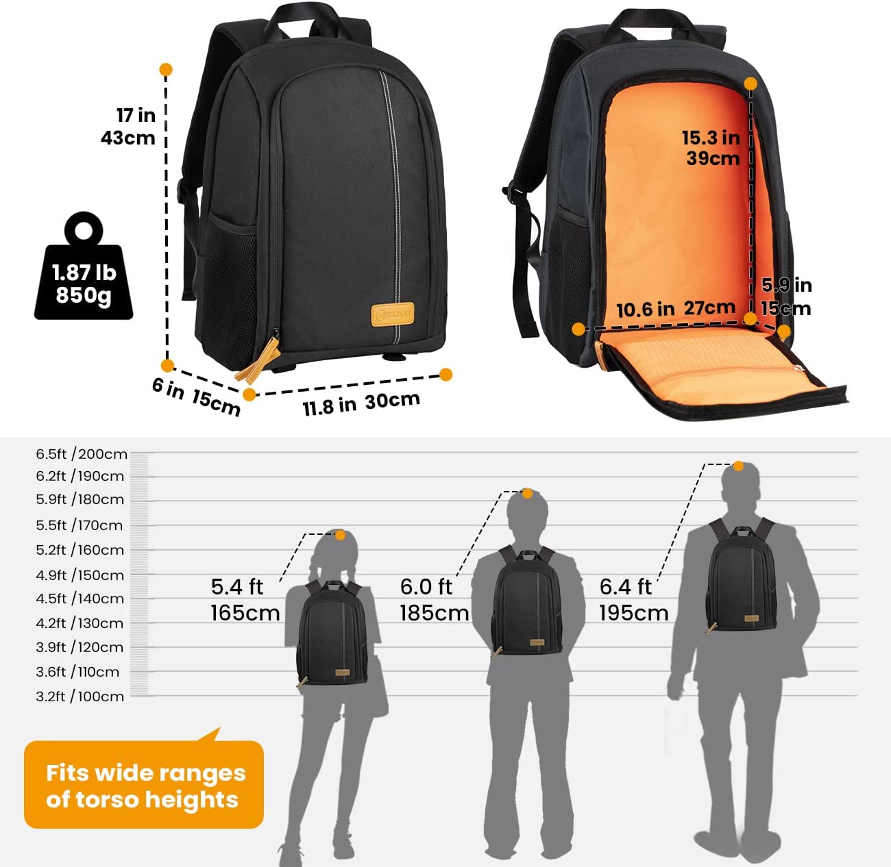 - 【Professional Camera Backpack with 15inch Laptop Compartment】 8 pieces padded removable dividers can be reorganized and offer certain protection for your own camera equipments. Camera tripod can be attached to the bottom of the camera bag. Dedicated 15inch laptop/tablet pocket.