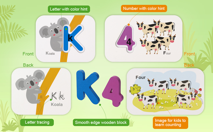 - 【Fun & Education】Match the alphabet letters or numbers with the animal picture base on the clue of shape and color. Each alphabet and number flash card has different animal. These letter game can help children to develop eye-hand coordination, color recognition, fine motor skills, visual perception skills, problem-solving skills.
