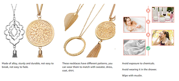 • Multiple match: these necklaces have different patterns, such as leaf, bar, circle and so on, you can wear these necklaces to match with sweater, dress, coat, shirt, you can wear them in combination or separately as you like
