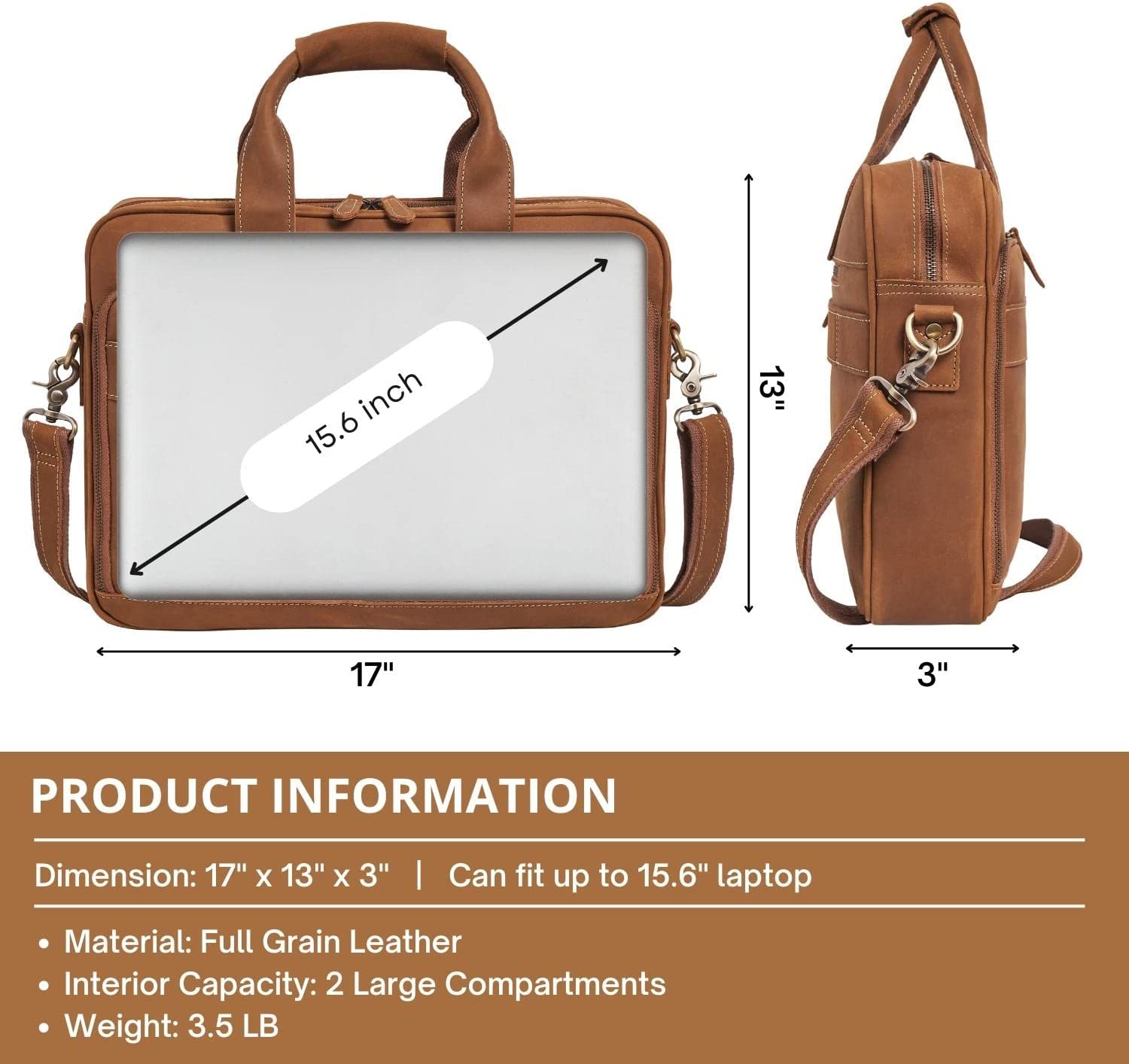 QUALITY CRAFTSMANSHIP - The executive leather briefcase for men is constructed with fine materials and expert craftsmanship. YKK zippers, solid antique brass hardware, precision stitching with heavy bonded thread, and a superb upgraded internal lining design. An office bag for men that will withstand many years of commuting.