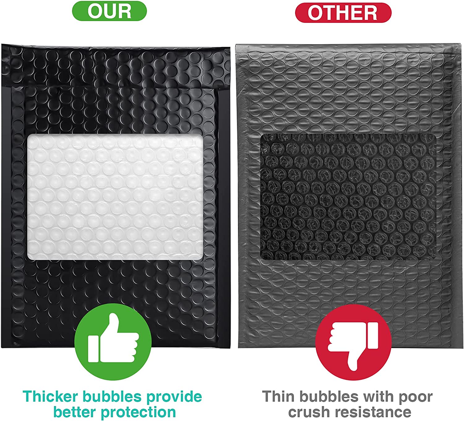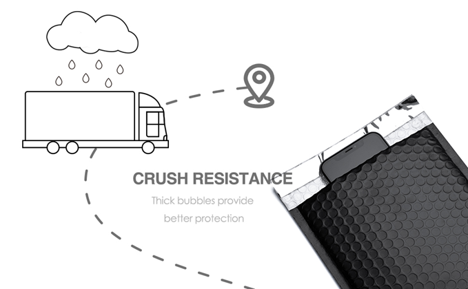 【Cushioning Mailers】Our poly bubble mailers are lined with 80gsm bubble with unique air cellular layers and all-round strong air bubble technology,helping absorb shock during shipment.Keeping your products safety and make your customer no complaint.
