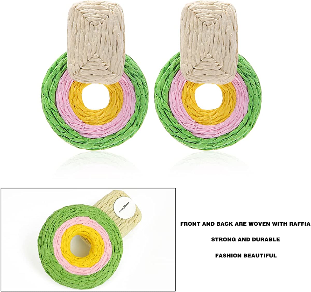 Boho Beach Earrings multipack: this Raffia Handmade Woven Earrings features: 2pcs front and back woven geometric shapes combination,Stylish and simple design style,Beautiful lightweight earrings-Perfect clothing accessories jewelry for summer.