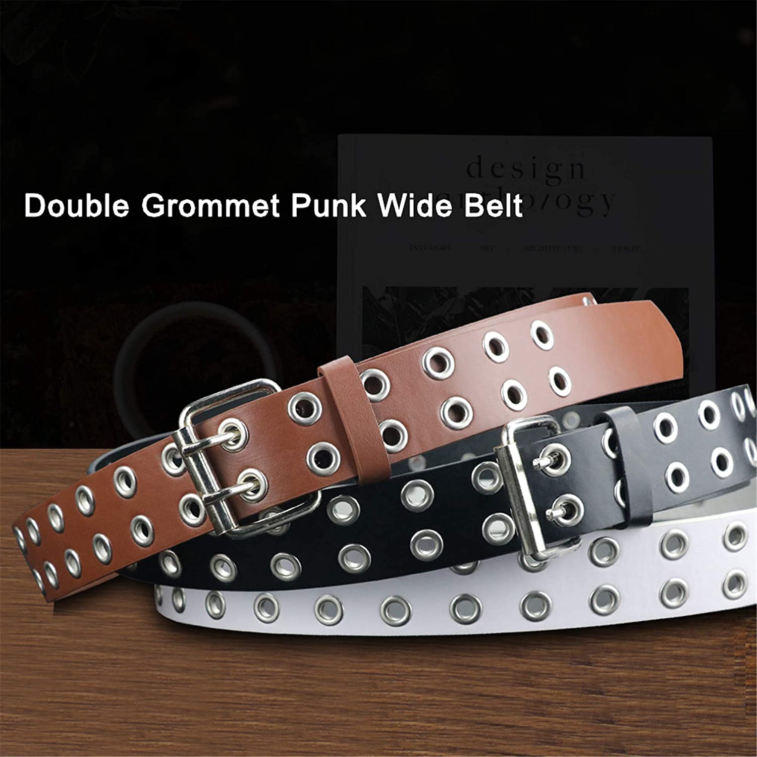 maikun Grommet Leather Belts for Women, Cute Black Belt, Studded Belt Punk Accessories