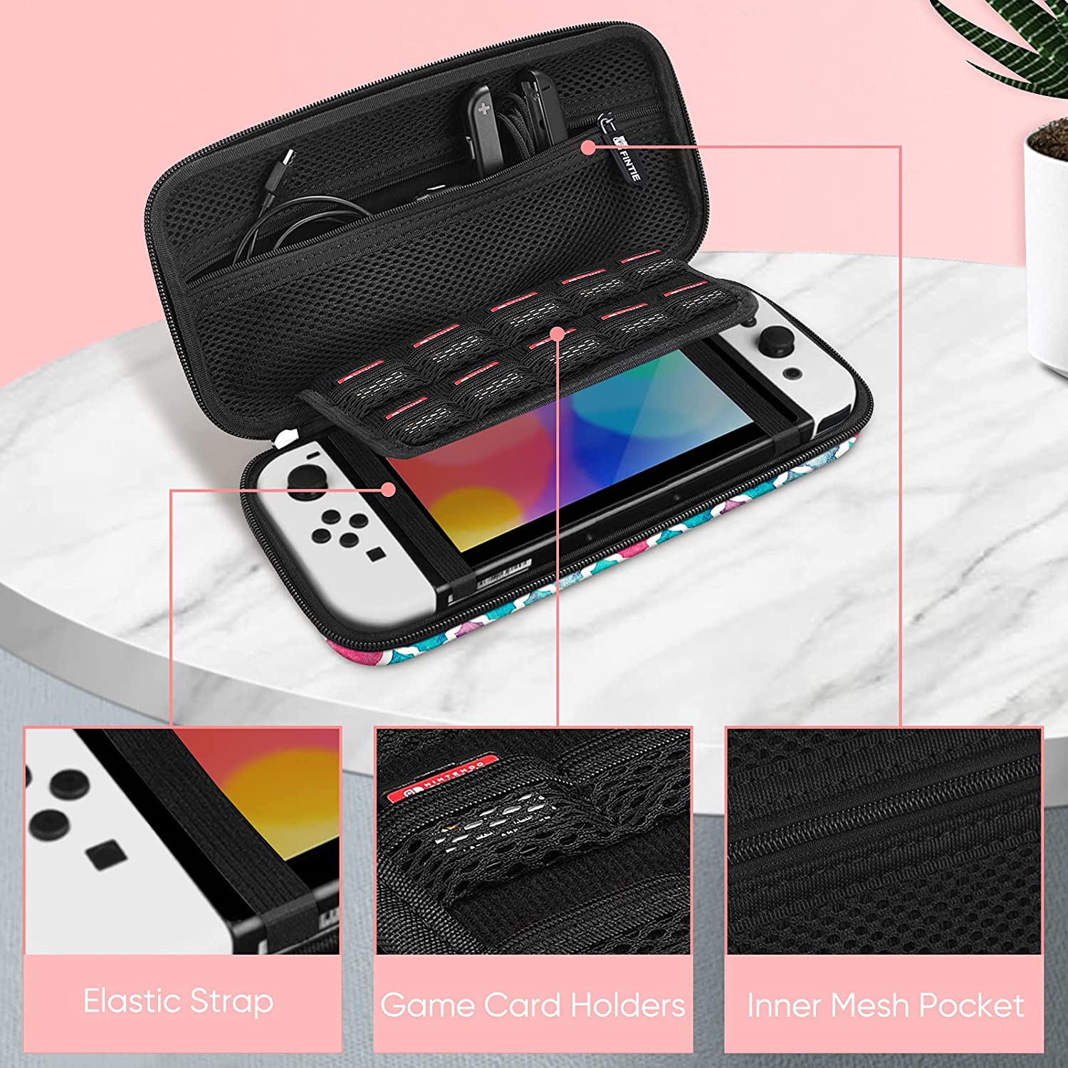 - Built-in Elastic Strap to fasten the Nintendo Switch / Switch OLED Model, so it won't collide with other things while in the case. Open and close easily with Double Zipper.