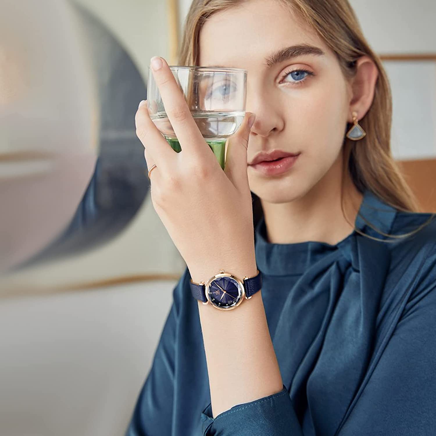 - 【Fashion Women Watch】: Unique three-dimensional design dial, Beautiful diamond hour scale, elegant golden case and hands, and comfortable and soft leather strap, this watch is suitable for you to wear in any occasion.