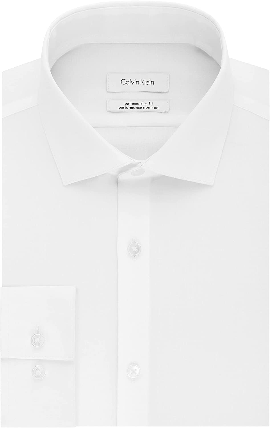 Calvin Klein Men's Dress Shirt Xtreme Slim Fit Non Iron Herringbone