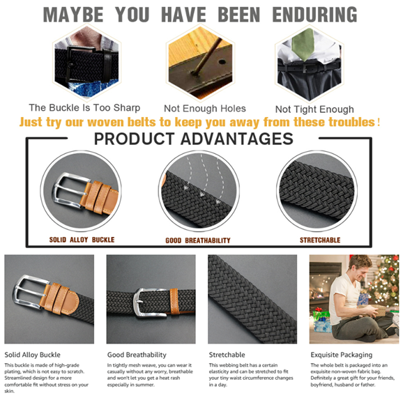 Q: Will this elastic belt be too tight to be uncomfortable? A: Of course not. The tightly braided web belt is heavy and thick for strength and comfort. With this simple pin buckle and elasticated design, you can fix the firmly at any length. Essential accessory fits in well with any types of jeans, trouser and pants.
