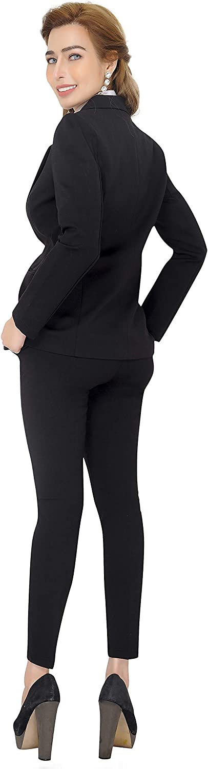 MOST COMFORTABLE PANT SUITS you'll ever wear to work: - Made of Durable, Ultra-comfy, 4-way stretch ponte fabric. You can look professional in office while performing hardest yoga postures in Lunch time.