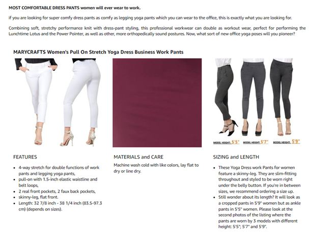• MOST COMFORTABLE DRESS PANTS women will ever wear to work - Made of Durable, Ultra-comfy, 4-way stretch ponte fabric. You can look professional in office while performing hardest yoga postures in Lunch time.