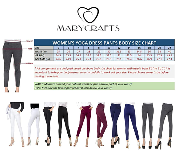 • SIZING: These Yoga Dress work Pants for women feature a skinny-leg. They are slim-fitting throughout and styled to be worn right under the belly button. If you're in between sizes, we recommend ordering a size up.