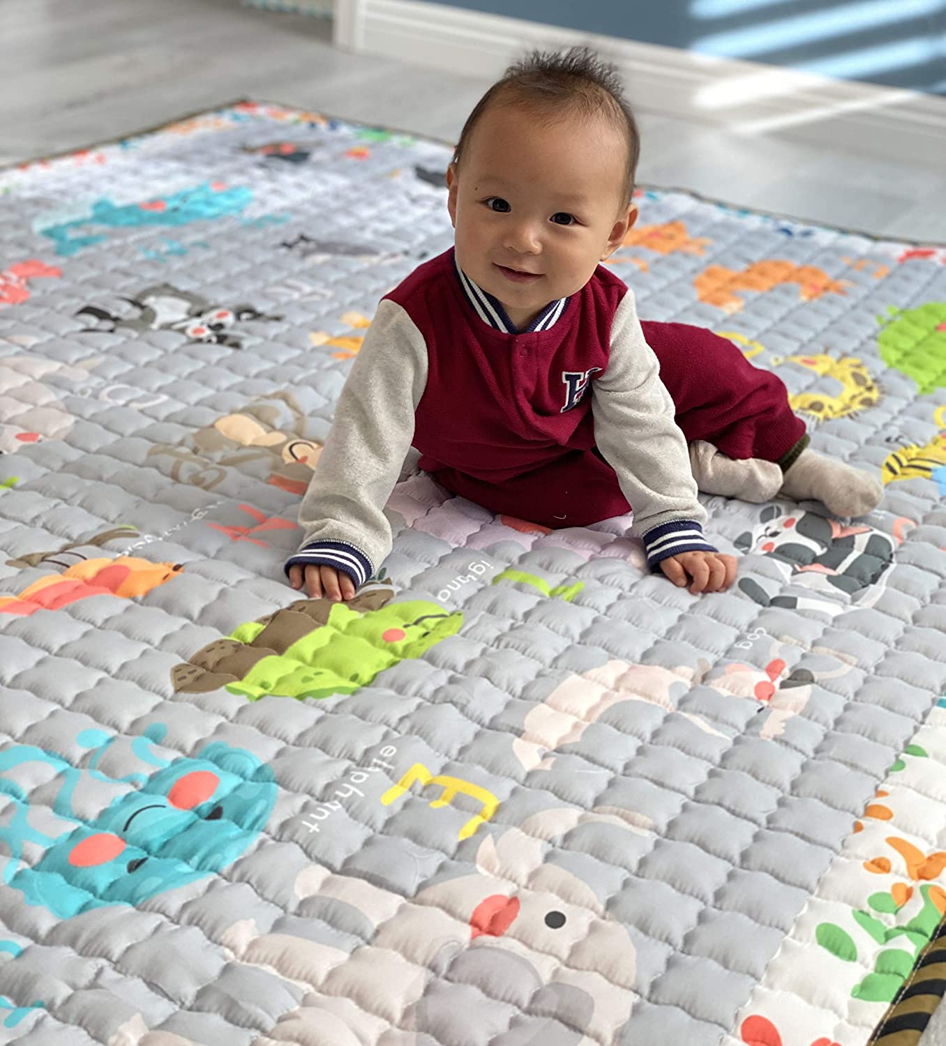 1" PADDED THICKNESS for babies and children to play, ideal for encouraging crawling, rolling, sitting up, and learning to walk. It ensures a soft landing for rolling, tumbling, and falls.