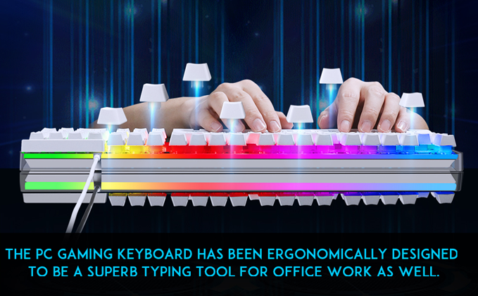 - 【Rainbow LED Backlight】The keyboard has a colorful LED backlight. The double-shot injection moulding process ensures that the letters never fade and have good light transmission. Even if you use the keyboard in the dark, you can see the letters clearly (also can be turned off).