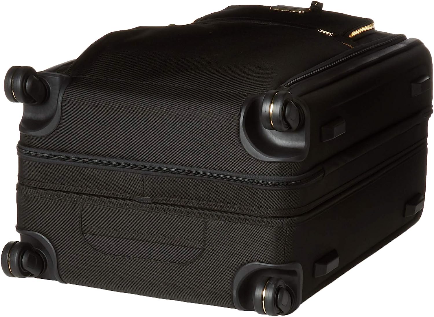 • Exterior Features: Split case zip entry to main compartment with security zipper, Large front U-zip pocket with security zipper, Front U-zip pocket, Gusseted front straight-zip pocket, Retractable top and side grab handles, Bottom grab handle, 3-stage telescoping handle, 4 dual spinner wheels, Molded impact-resistant side panels, Protective bumper rails, Built-in TSA combination lock, TUMI Tracer