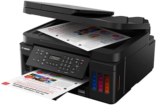 Meet the PIXMA GRNUM Wireless MegaTank all-in-one printer - designed for serious print productivity with a high page yield of up to 6 000 pages of Black text or up to 7 700 vivid color pages per full ink bottle set from the reliable refillable ink system. The PIXMA GRNUM MegaTank printer delivers outstanding high yields resulting in a low cost per page and also features superior versatility thanks to an ADF for scanning copying and faxing. The GRNUM allows you to keep working - even on large print jobs - with auto 2-sided document printing borderless2 photo printing and a 350 sheet plain paper capacity connectivity is paramount with the GRNUM featuring Wi-Fi 3 and Ethernet connection when printing from computers and also for mobile printing with airprint 4 Mopria Print Service5 and the Canon Print app6 for even more printer information and control.