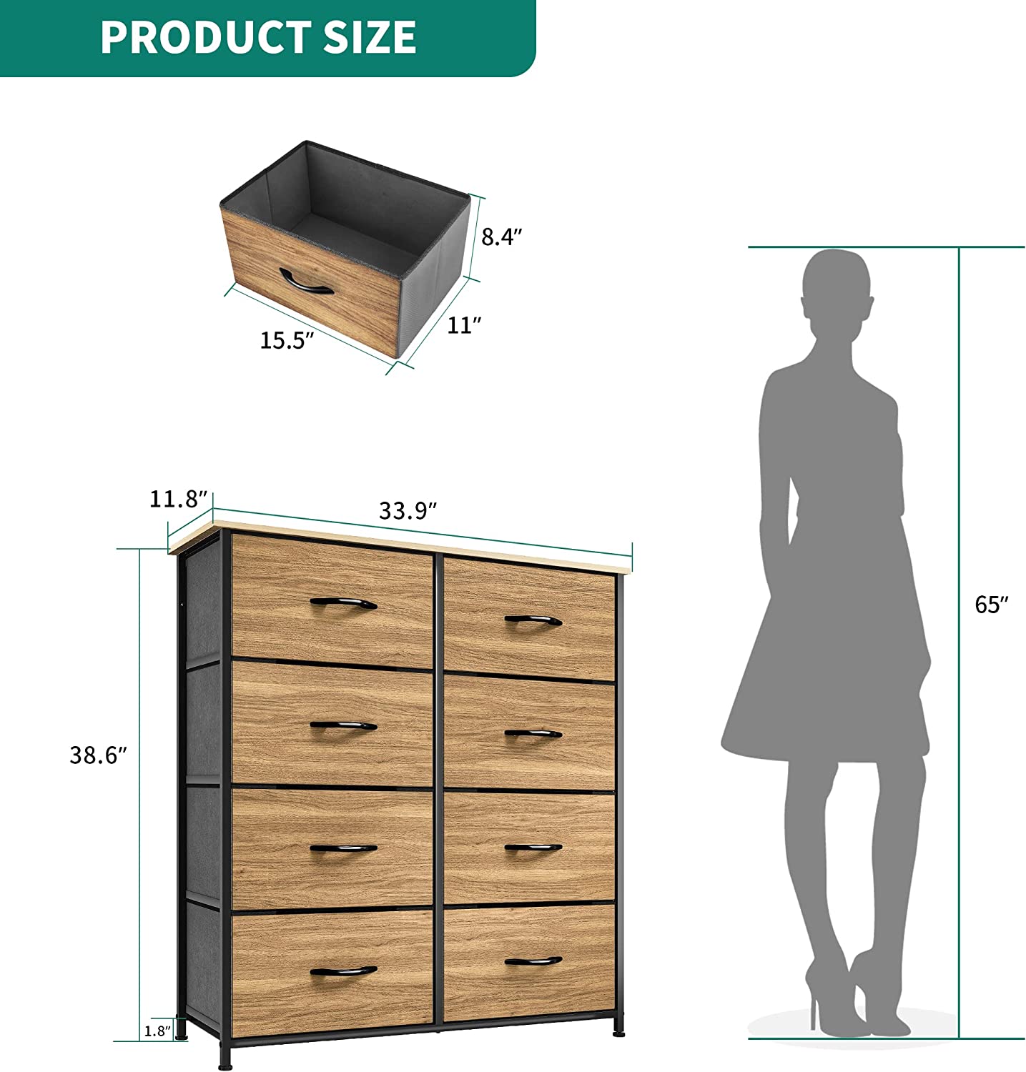 8- DRAWER DRESSER- The 8 deep drawers are foldable and removable, with easy-to-pull plastic handles rounding out the design; High quality non-woven synthetic fabric is easy to care