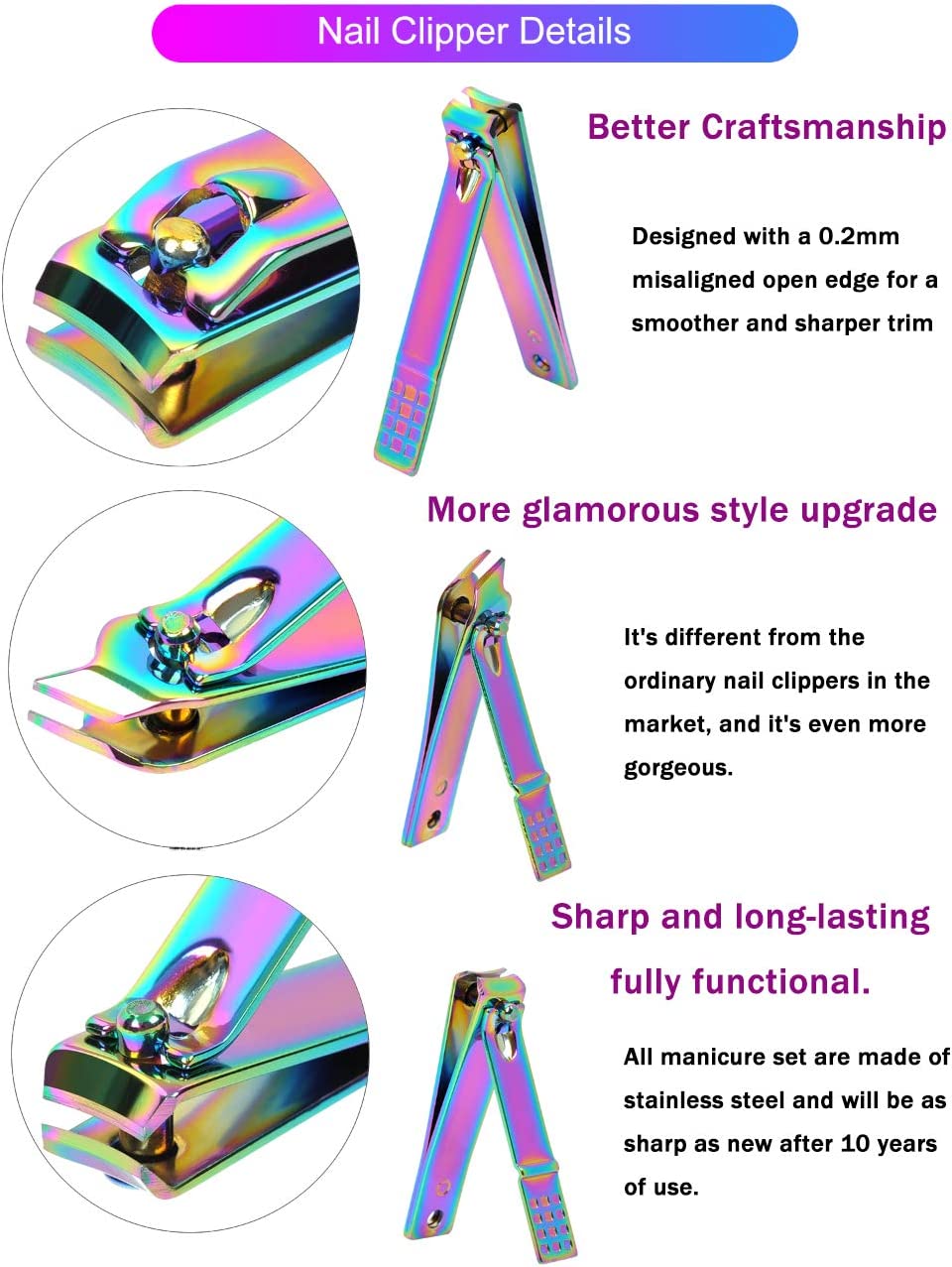 - 【2020 New Unique Design】: Our rainbow manicure kits, its highlight is rainbow tools with a rainbow PU leather texture case, feel comfortable, fashion and practical. This will be the first time on the market in 2020. You will be amazing about it. Beautiful leather covers will never go out of style, have a comfortable feel and are easy to trim. It will be an excellent quality gift for christmas, birthday, anniversary and marriage.