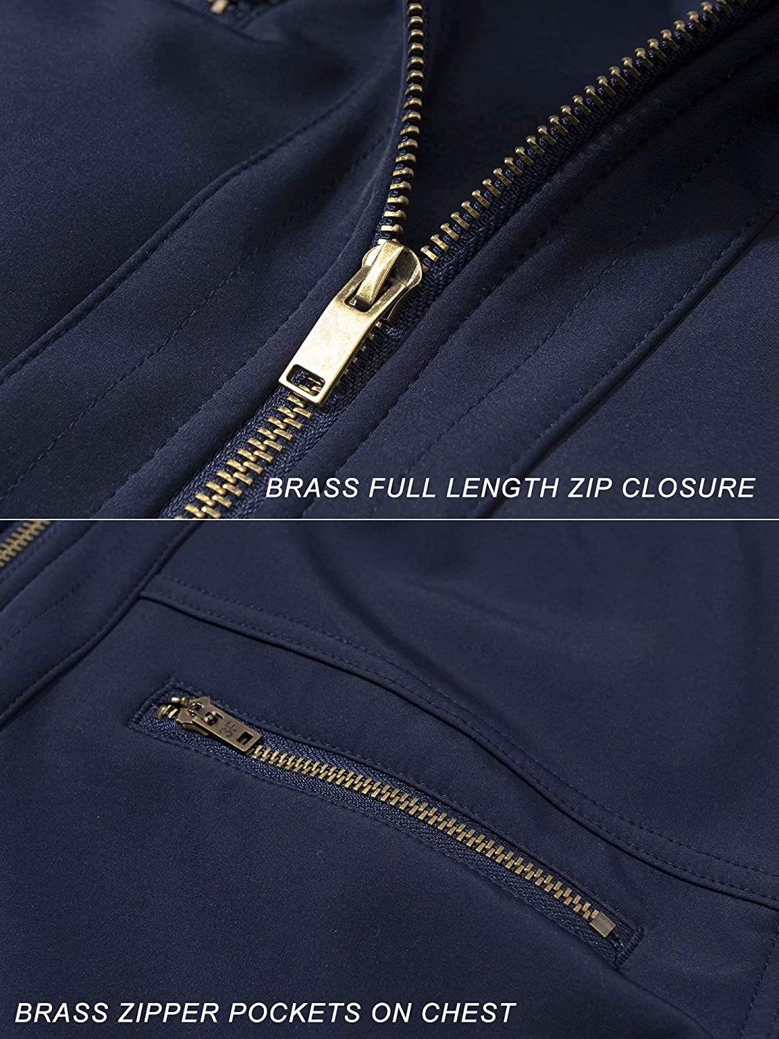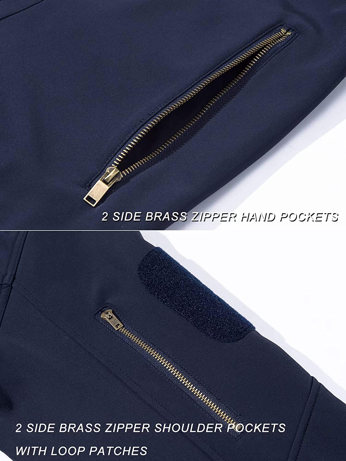 Loop Patches & 6 Brass Zipper Pockets: 2 Shoulder Brass Zipper Pockets With Loop Patches, 2 Hand Brass Zipper Pockets, 2 Chest Brass Zipper Pockets For Storing Essential Gear