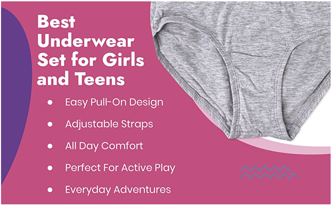 LEADING GIRLS UNDERWEAR VALUE PACK THAT'S PERFECT FOR EVERYDAY: Our Little Girl Underwear Gives You The Best Value For The Money! You'll Get Multiple Matching Sets Of Girls Training Bras & Girls Panties In A Variety Of Colors & Patterns.