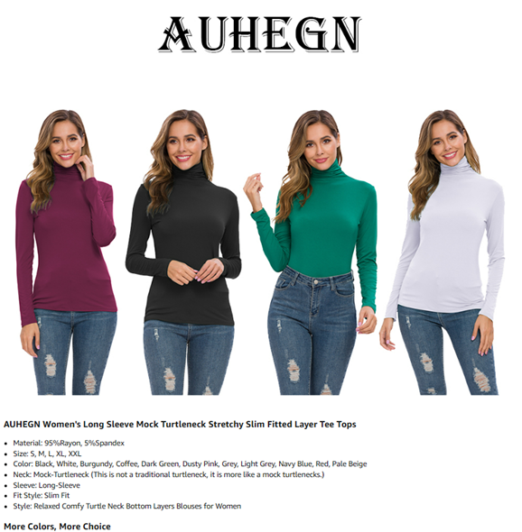 AUHEGN Women's Long Sleeve Lightweight Turtleneck Top Pullover Casual Active Layer Tops Shirts