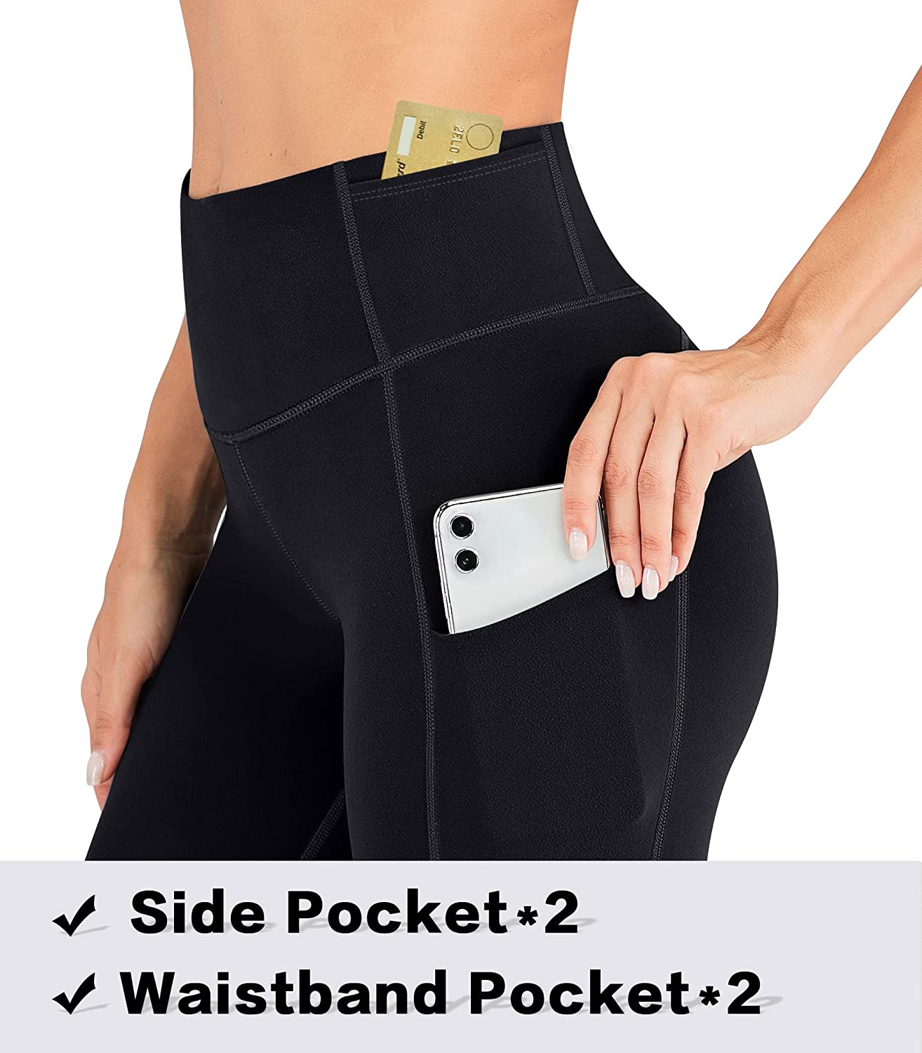 Exclusive 4 Pockets Design: IUGA womens leggings with 2 side pockets & waistband pockets are ideal for keeping your phones, keys, etc. while you're on the yoga or cardio exercise. With 2 deep side pockets, you can fit a large smart phone with room to spare. What’s more, your cards and keys can be placed separately with the 2 waistband pockets.