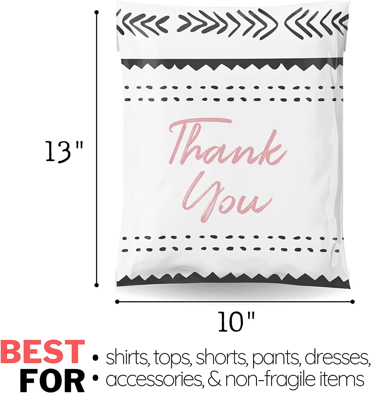 10x13 Poly Mailers Pack of 100 Reusable Shipping Supplies Envelopes Mailing Bags Clothing Small Business Plastic Packaging Sticky Self Seal Cute Pink Thank You African Fig