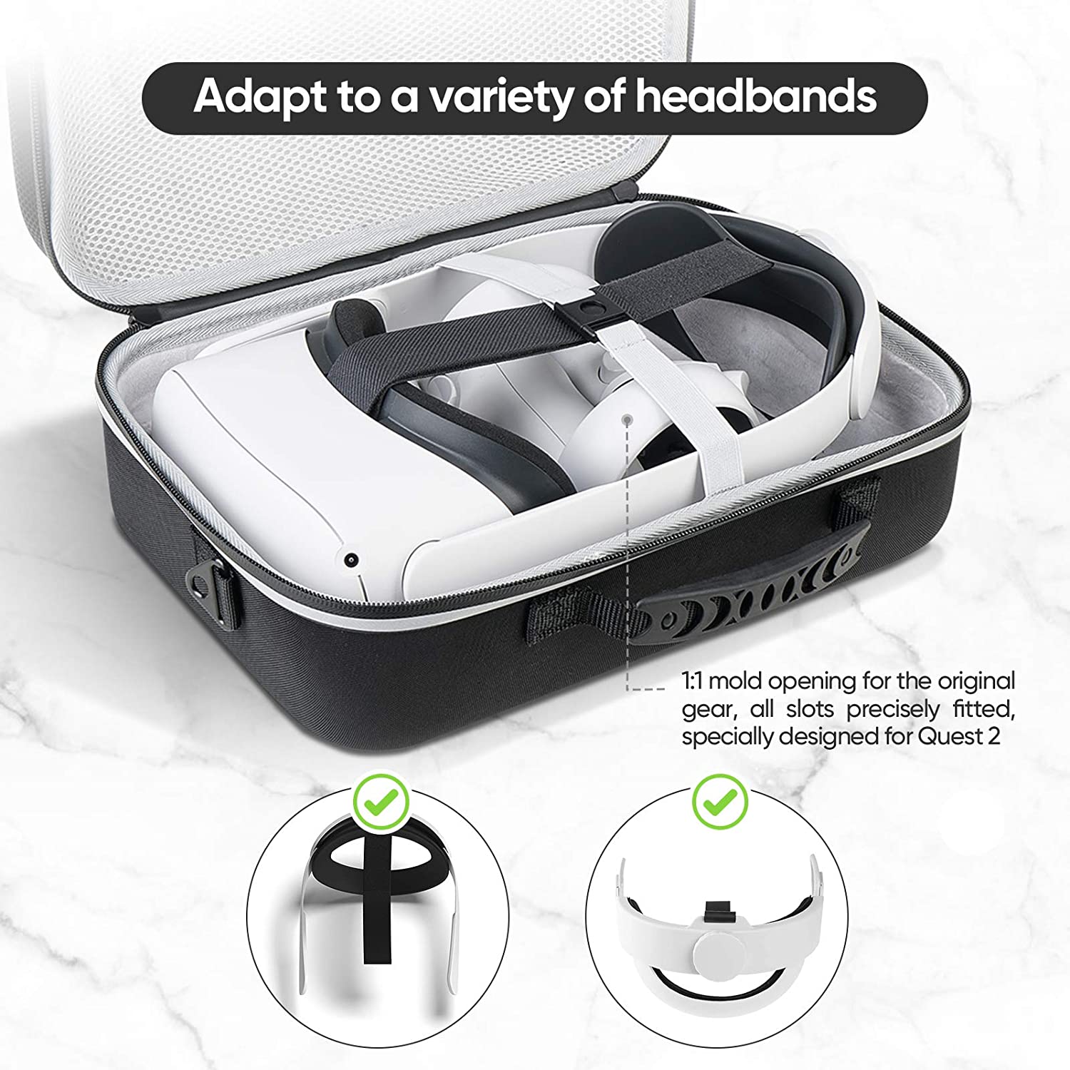 Safety: Made of hard EVA lightweight material,Fixed elastic band inside, waterproof, Shockproof, Stylish and Durable Guaranteed to prevent any damage to your Oculus Quest 2 VR Gaming Headset and its accessories.
