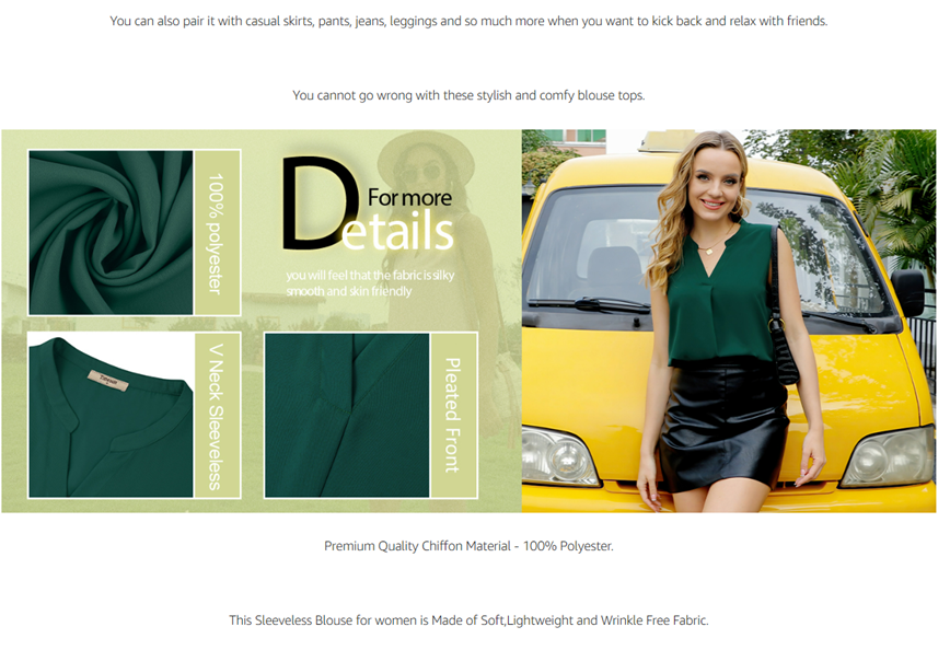 • The fabric is made of 100% polyester.When wearing these sleeveless blouse for women, you will feel that the fabric is silky smooth and skin friendly.