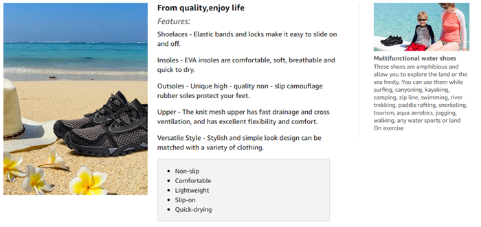 - QUICK DRYING AND COMFY: Water shoes with open mesh upper promises quick drying and breath-ability, let each step cool, dry and comfy.