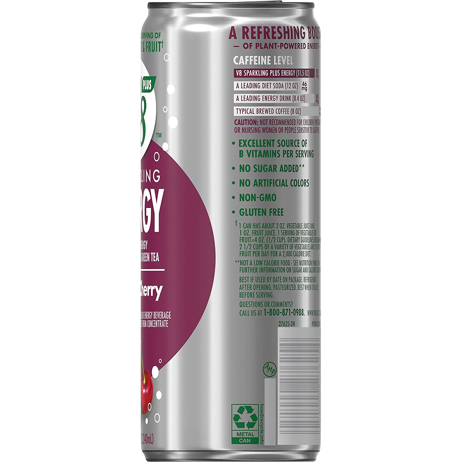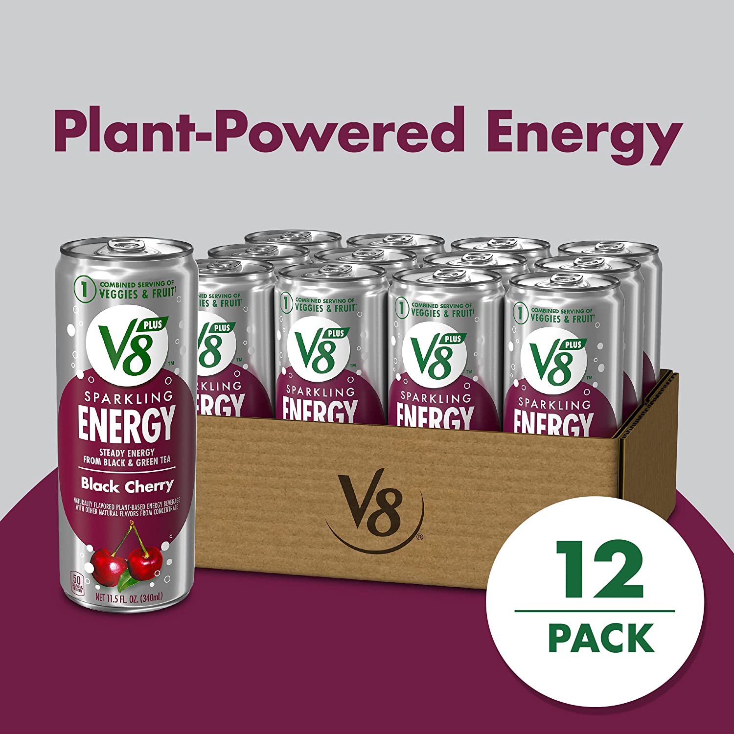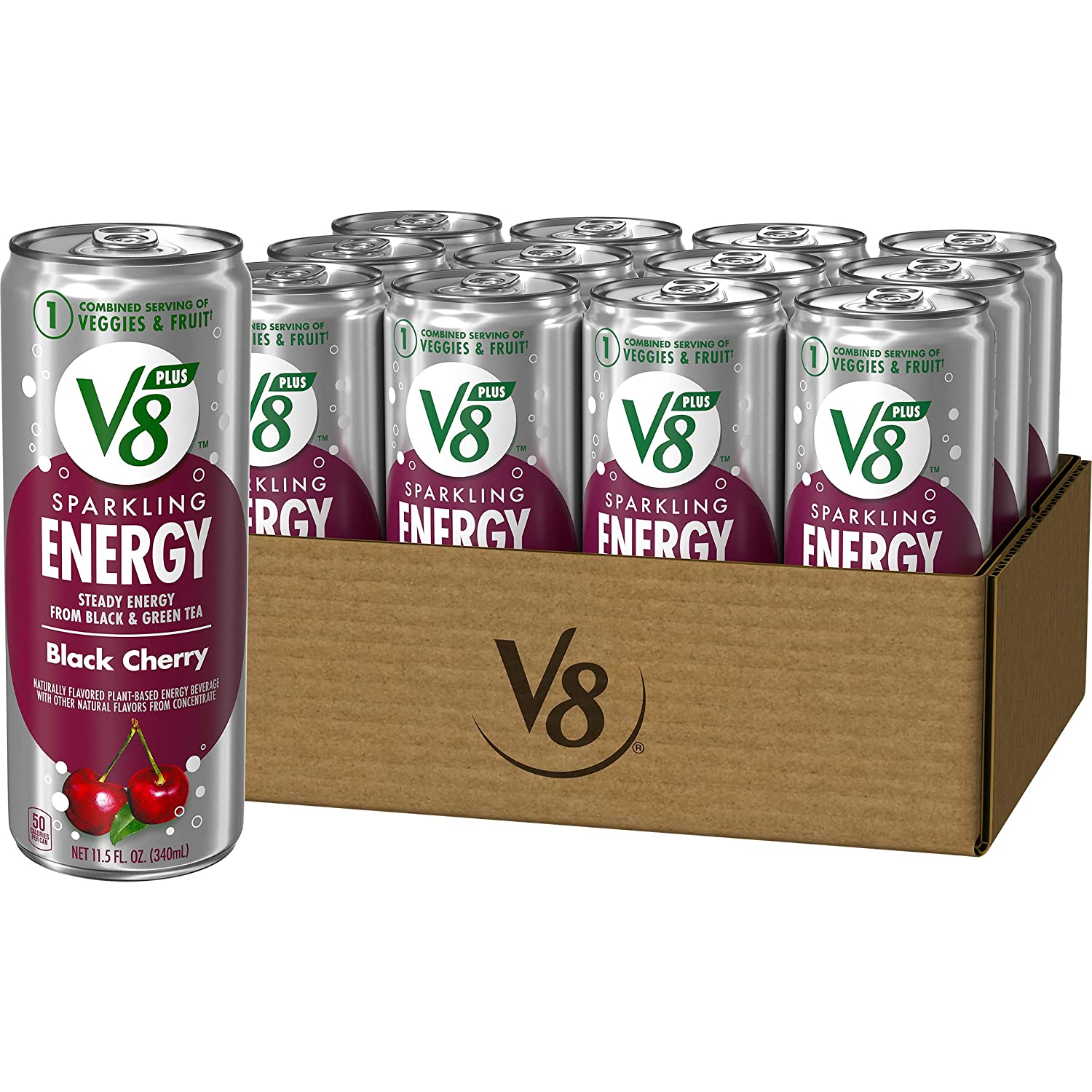 • Fruit Flavored Energy Drinks: Twelve (12) 11.5 fl oz cans of V8 +SPARKLING ENERGY Black Cherry Energy Drink