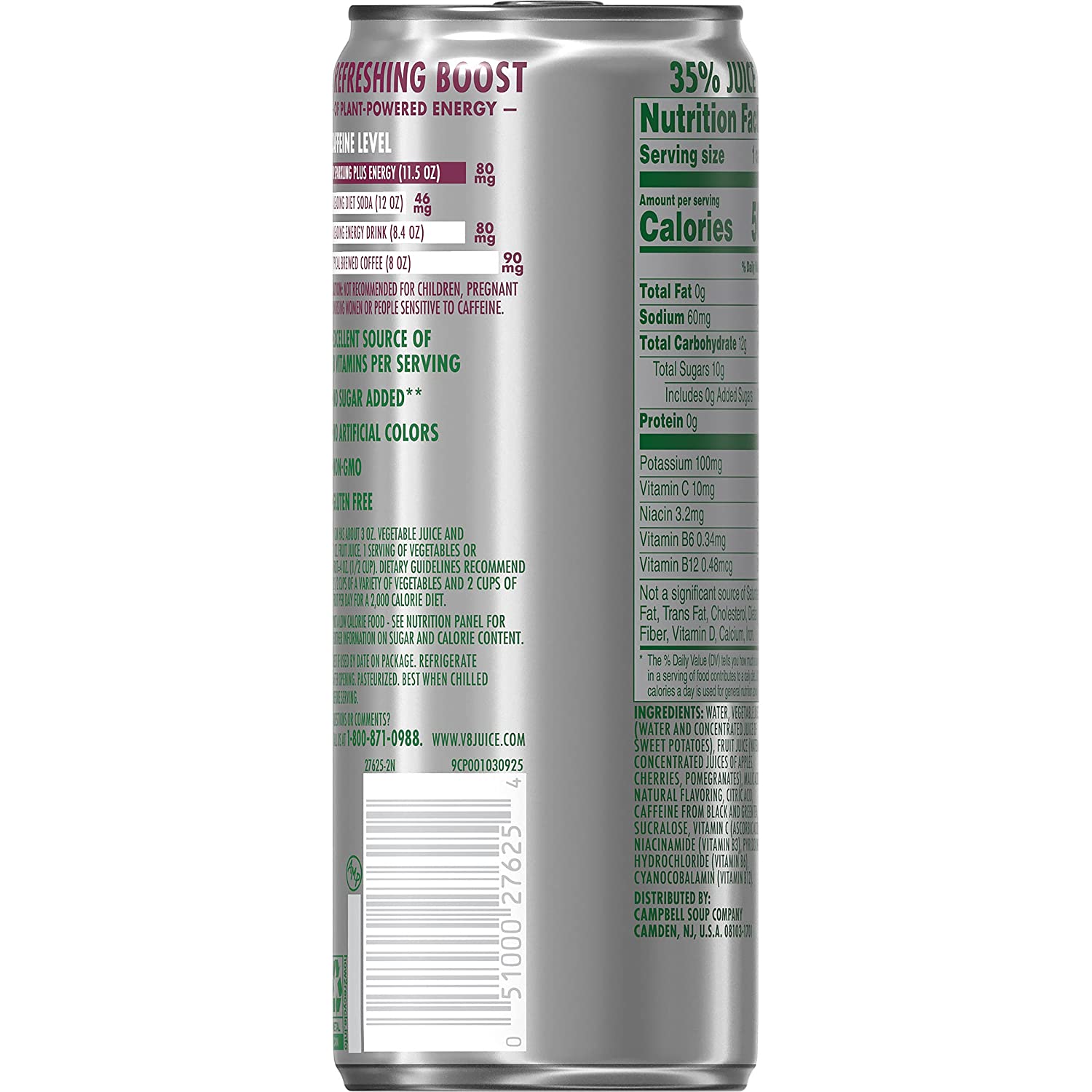 • Daily Fruits and Vegetables: Sparkling V8 energy drink contains one combined serving of fruits and vegetables for a drink you can feel good about