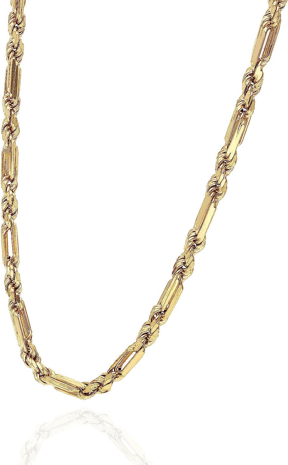14K Solid Yellow Gold 4mm Milano Figaro Rope Chain Necklace 20"-26", 20"
