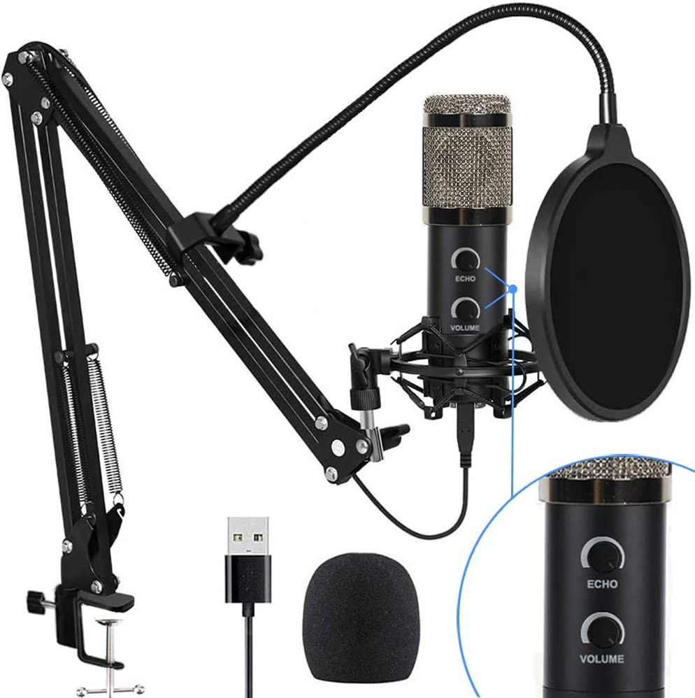 Upgraded USB Condenser Microphone for Computer, Great for Gaming, Podcast, LiveStreaming, YouTube Recording, Karaoke on PC, Plug & Play, with Adjustable Metal Arm Stand, Ideal for Gift, Black