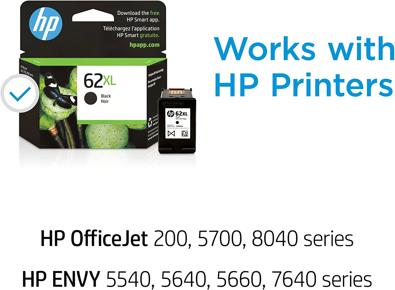 HP 62XL Black High-yield Ink | Works with HP ENVY 5540, 5640, 5660, 7640 Series, HP OfficeJet 5740, 8040 Series, HP OfficeJet Mobile 200, 250 Series | Eligible for Instant Ink | C2P05AN