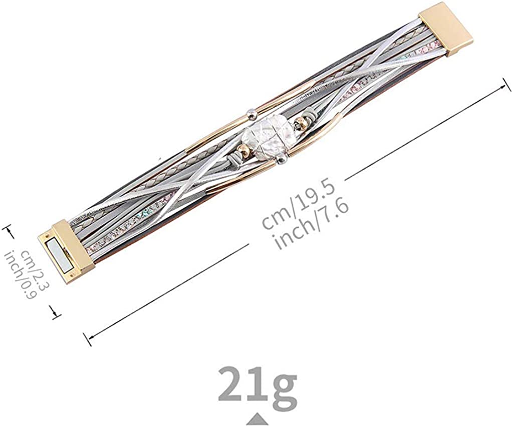 - 【SUITABLE FOR MOST WRISTS】 This women leather bracelet measures about 7.67 inches in length and 0.59 inches in width, fit for most women and girls' wrist. (Approximately fit for 5.5''-6.7" wrists) Because of light weight, it is comfort to wear and you will never feel tired or boring.